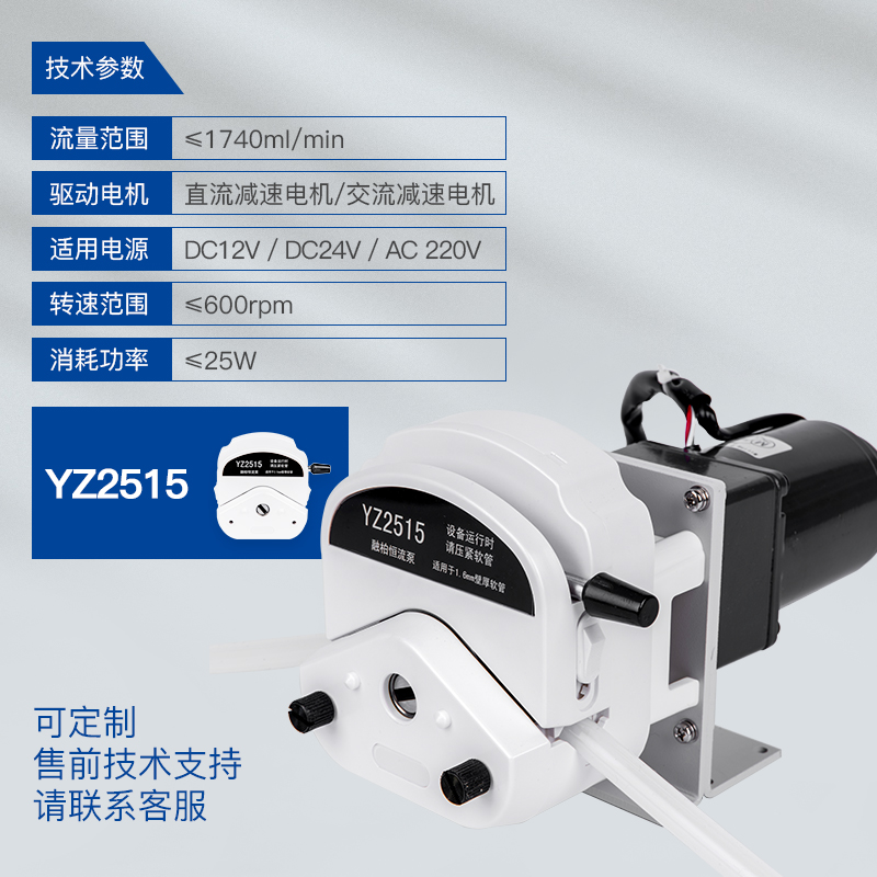 YZ1515泵頭:適用13#、14#、19#、16#、25#、17#、18#軟管 ,最大參考流量,≤2280mL/min,支持1通道