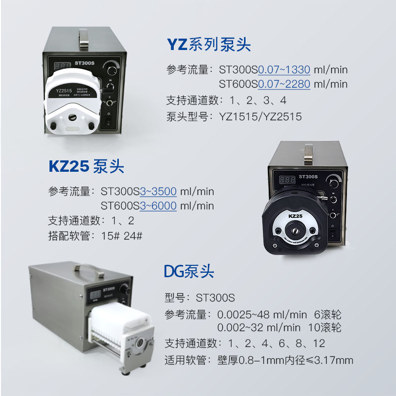 YZ2515泵頭:15# 24#軟管,參考流量范圍1.7-933(ml/min),支持通道數1/2/3/4